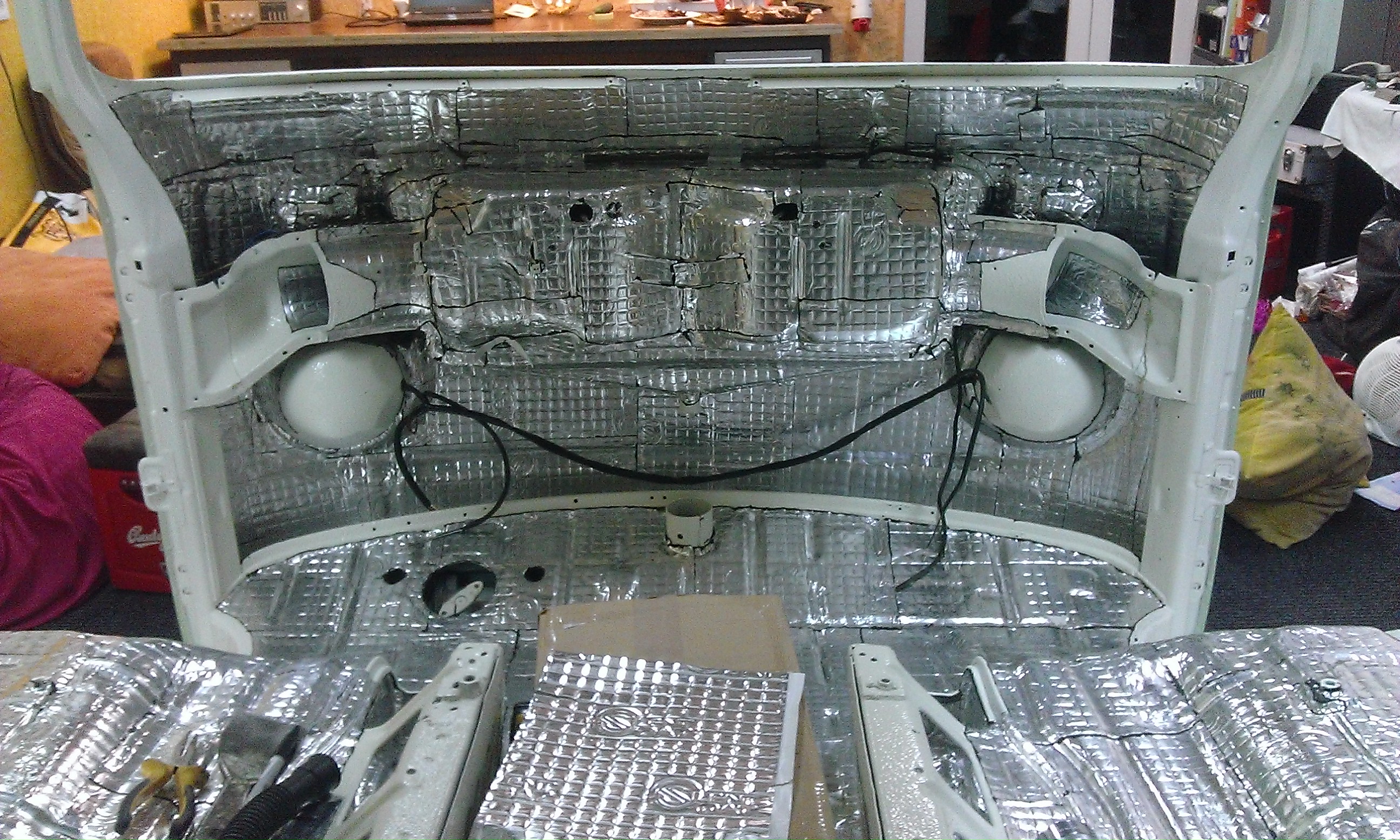 Enda T3le panin pigimati mootoriruumi peale ja siis ca 100mm matt pakiruumi ja diisel mootori müra väga palju sisse ei tule.