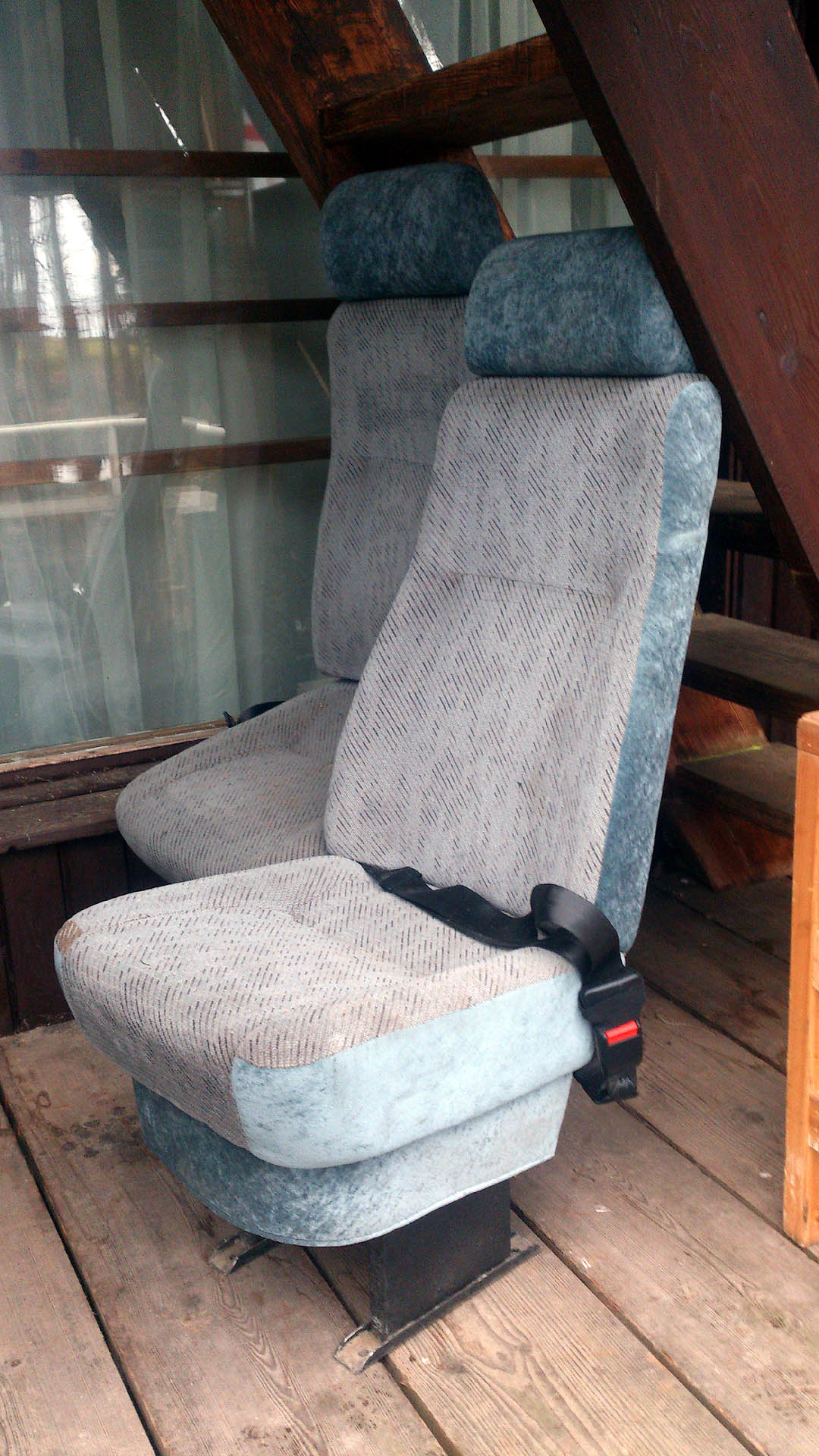 2-punkti turvavööd; ühel seljatugi reguleeritav, teisel jäik; praktiliselt kasutamata kuid veits pesu ei tee paha; pigem kitsad (tee nt laud vahele) kuid kõrgete seljatugedega; istumine veidi kõrgemal kui T3-l (näeb hästi ette/välja). Originaalis vist Hiace või T4 lisaistmed.